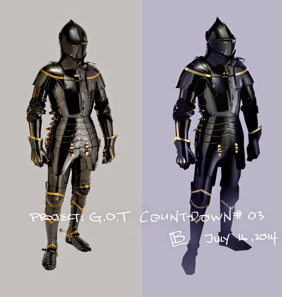 Another armor study. Varying the colors just a bit to see if I can add more punch than the source photo. Fun learning process for this one. Was really interesting to find out how some values don't seem to work until you place another value next to it.